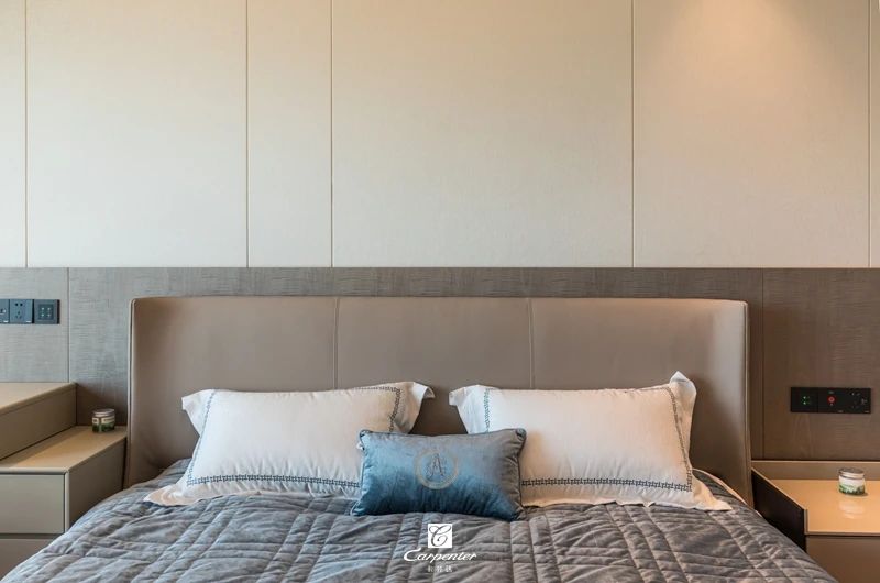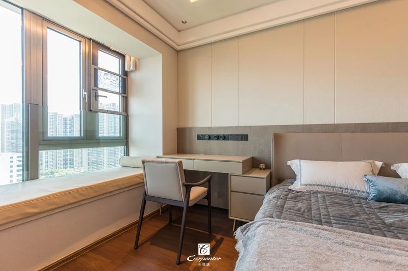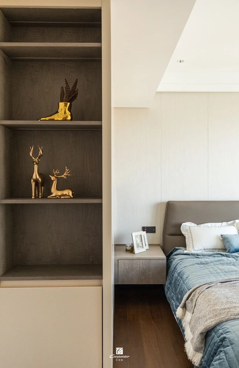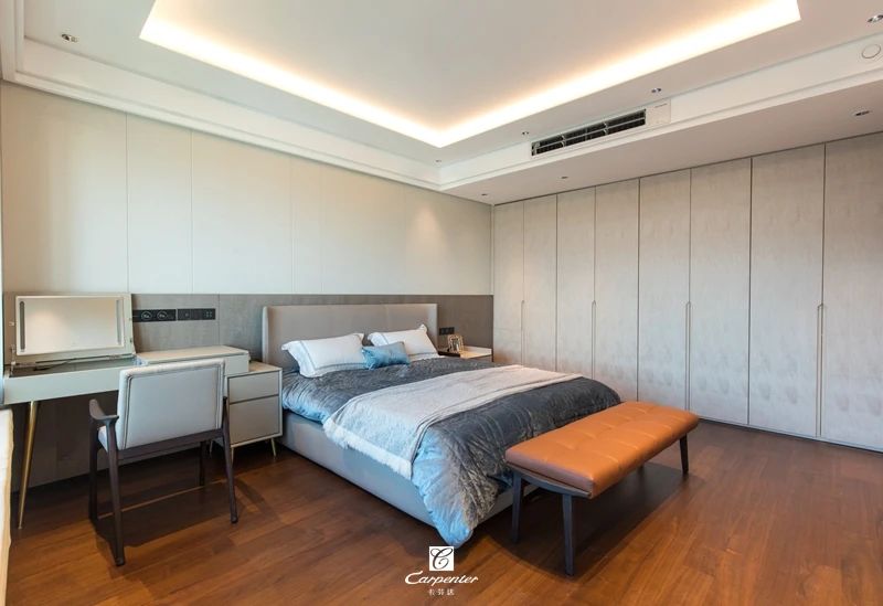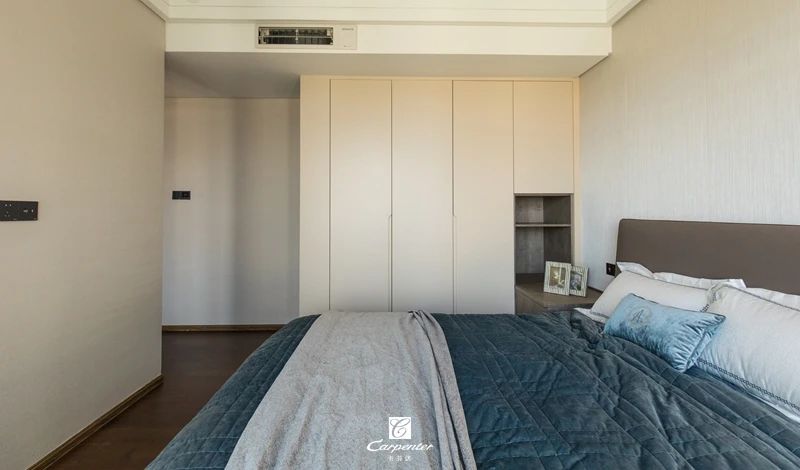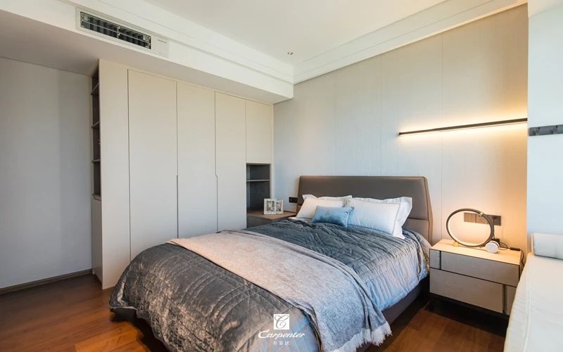 主臥空間以灰白為基調,主打純色空間